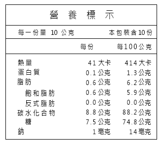 成 份:砂糖.麥芽糖.明膠.椰子油.煉乳.奶粉.調味劑(檸檬酸).抗氧化劑(維生素C).芽孢乳酸菌.香料.食品製造用劑(棕櫚蠟)